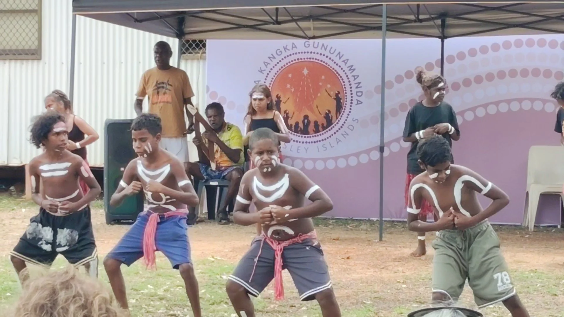 Mornington Island State School Dance Group performing at the JKG Summit event, 2025